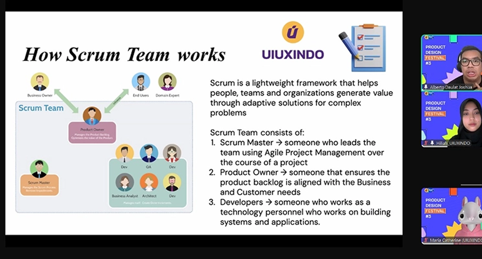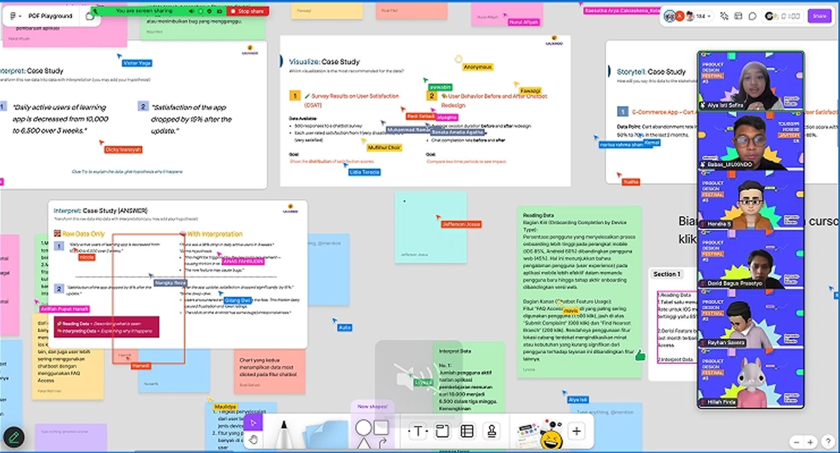 Insight tentang praktik mendesain secara kolaboratif di lingkungan kerja jarak jauh menggunakan tools seperti Figma, FigJam, dan prototyping async, termasuk handoff yang rapi ke developer.
